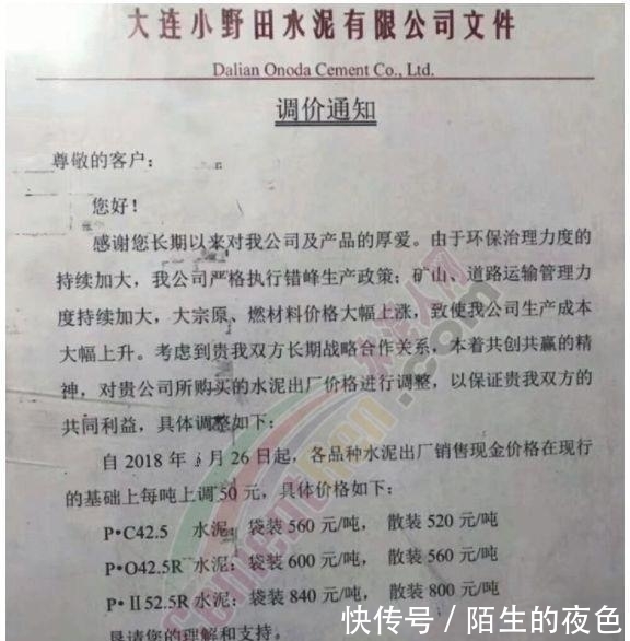 据水泥人了解,此前,大连小野田水泥发调价函上调各标号水泥价格,其袋装水泥市场零售到位价已经涨到860-870元/吨,接近900元/吨,甚至超过西藏高原的水泥价格。